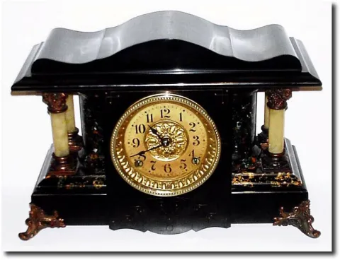 C.1900, Seth Thomas Adamantine mantel clock This is the large model with serpentine top and rounded ends.