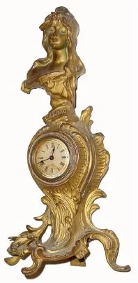 C.1900, Ansonia, BOHEMIAN, cast figural clock in generally good original condition.