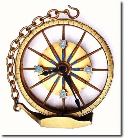 C.1900, Swiss, a gilded bronze strut clock, nautical motif, with a large finger bridge movement with cylinder escapement (runs for more than a day, but unsure how long). There is some wear to the blue enamel trim, but the clock is otherwise in very good condition. Note height is only 4.4'