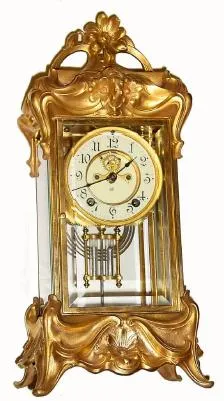 C.1905, Ansonia Clock Co., for Jennings Brothers, unusual crystal regulator with Art Nouveau theme.