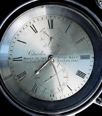 C.1900. 8-hour marine chronometer with up/down indicator. "Charles Shepherd, Maker to the Royal Navy, 53 Leadenhall Street, London, No. 1002."