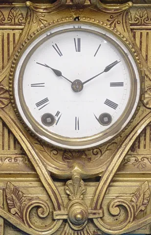 Circa 1876 3 1/2 inches signed white enamel dial, 18-day, brass spring driven movement, fancy cast spelter with gold-painted finish, refer to page 166...