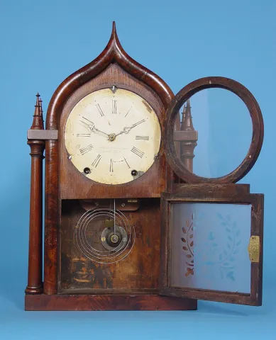 American Brewster and Ingrahams Walnut "Onion Top Candlestick" Shelf Clock,