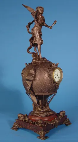 French August Moreau/S. Marti Large Balloon Flight Figural Victorian Table Clock,