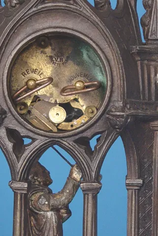 French Signed V.R. Novelty Animated Monk Ringing Bell Timepiece,