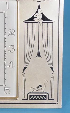 Circa 1920 5 1/2 x 3 3/4 inches silver engraved dial, 8-day, brass spring driven movement, unusual French enamel and silvered case depicting Cherub bl...
