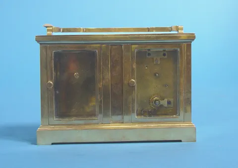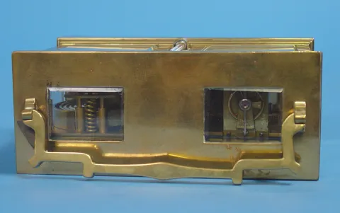 Circa 1925 4 inches x 2 inches enamel dials with gilt mask, 8-day, brass spring driven movement with arrow trademark of Couaillet family, rare and unu...