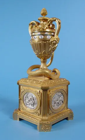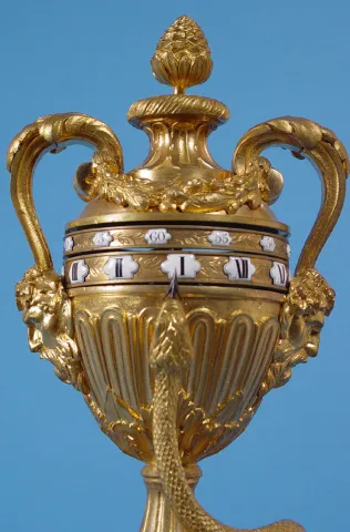 French Mystery Annular Dial Dore' Bronze and Silver Urn Clock,