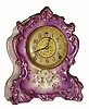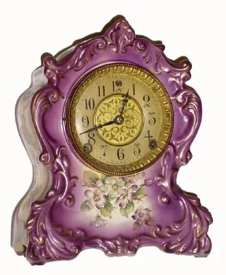 C.1900, William L. Gilbert Clock Co., "No. 418", 8-day time/strike violet color porcelain mantel clock in clean as found condition,