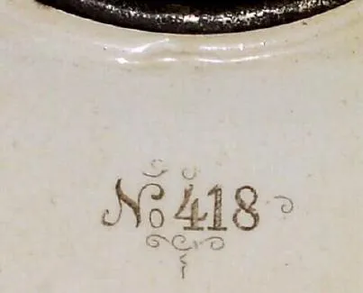 light violet with accents. There is an original casting flaw on the inside of the back that does not show through to the outside. The applied gilding...