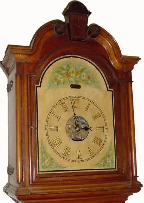 C.1770, Germanic, Pennsylvania, Rack Strike, 30 hour 2-weight tall case, as restored by James Arthur in 1905.