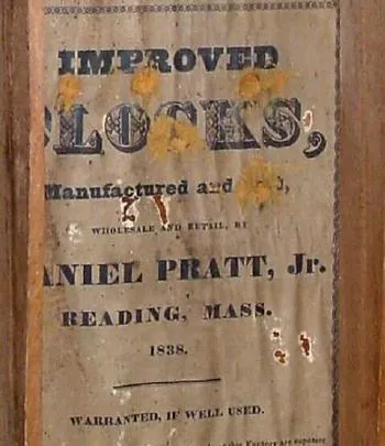 C.1838, Daniel Pratt, Reading, Mass, stenciled column and splat, 30 hour wooded works, as-found, in need of restoration.