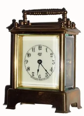 C.1893, Waterbury Clock Co., "CONDUCTOR", 1-day time, strike & repeat carriage clock in excellent original condition.