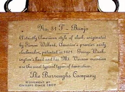 C.1930, The Burroughs Co., "No. 51 T - Banjo" 30-hour wall timepiece.