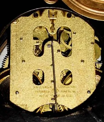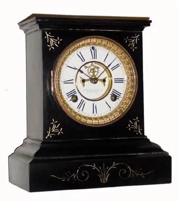 C.1894, Ansonia Clock Co., 8-day time/strike enameled iron case mantel clock in good restored condition.
