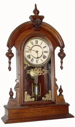 C.1880, William L. Gilbert Clock Co., "Parisian", 8-day time/strike stripped finish walnut shelf clock in fair to good condition.