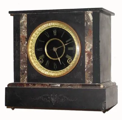 C.1885, American, unknown marriage, 8-day time/strike black and contrasting marble mantel clock