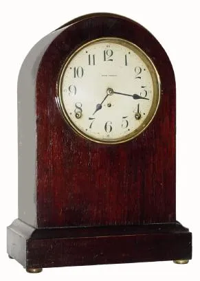 C.1913, Seth Thomas Clock Co., "Prospect No. 9", 8-day time/strike mahogany veneered mantel clock in very nice condition
