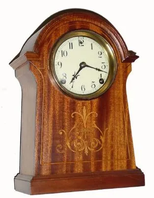 C.1908, Sessions Clock Co., "Plymouth", 8-day time/strike refinished mahogany mantel clock in nice condition