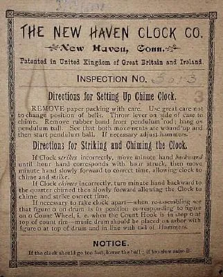 C.1900, New Haven Clock Co., "Westminster Chime No. 3", 8-day time/strike chime clock, in excellent original condition.