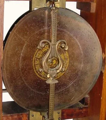 C.1895, German Symphonion, Style 30St disc playing grandfather clock in good condition, needing restoration.