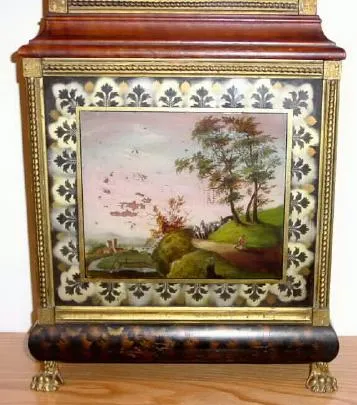 There are some repairs and touch up on the painted dial, and some small chips and repairs to the veneer. At this date, S. B. Terry was working for Gi...