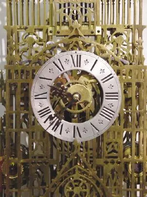 C.1875, W. F. Evans, Birmingham, 3-fusee, 8-bell quarter chime skeleton clock in the form of Westminster Abbey.