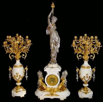 The small porcelain alarm dial is mounted to the back plate of the movement, accessible through the cast floral rear door. Although there are some we...
