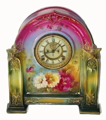 C.1912, Ansonia Clock Co., "La Vire", Royal Bonn porcelain china clock in excellent original condition (dirty, needs clean).