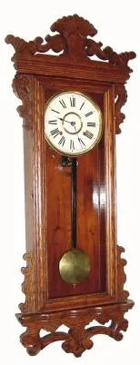C.1901, Ansonia Clock Co., "Queen Mary", 8-day time/strike oak wall clock in very fine condition with the original finish that has been cleaned and rubbed.