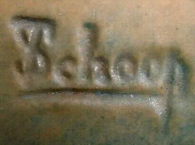 C.1900, A Schoop Pottery case, with a German 30 hour fit up movement that ticks and stops.