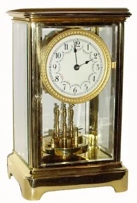 C.1908, Jahresuhrenfabrik, 400-day brass crystal regulator timepiece in very good restored condition.