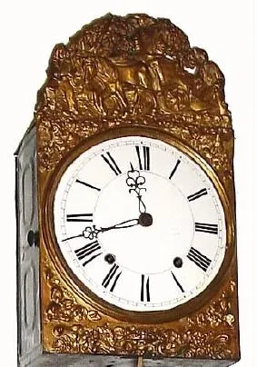 C.1850, French, 2-Weight Morbier, crown wheel with vertical rack strike and repeat, 8-day with grid/lyre pendulum in good condition.