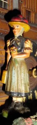 This in an interesting Chalet with a pivoted man and woman on either side of the dial. When it strikes (cuckoos), the 2 figures rotate quickly, not so...