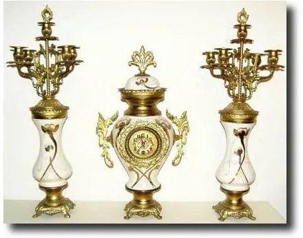 C.1910, German Art Nouveau 3-piece porcelain and bronze set