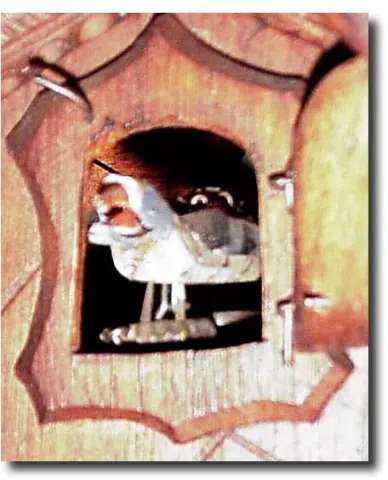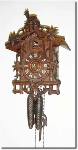 C.1910, German, Black Forest Cuckoo, with unusual Edelweiss and goat motif.