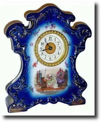 C.1910, German, Cobalt Blue porcelain china mantel clock