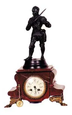 The golden oak case is 36.5" high by 17.5" wide. The headpiece, upper door, and "ears" on the sides, are carved. The upper door was originally key loc...