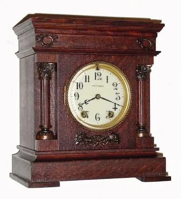 C.1900, Seth Thomas, ?CORDOVA?, oak cased mentel clock, 15-day time and strike, case with plated metal caps and trim.