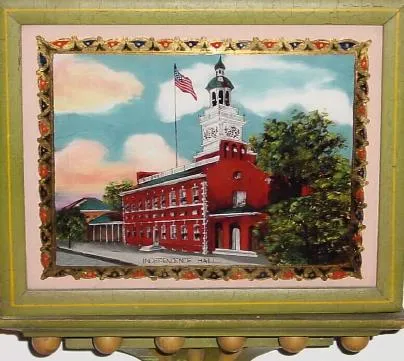Condition: Original green crackle finish with applied line inlay on a hardwood case is in very good condition with some minor flaking on the bracket. ...