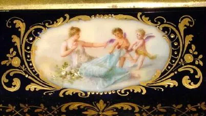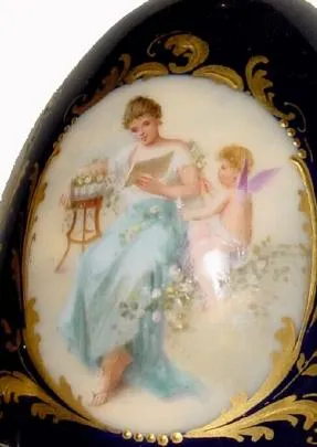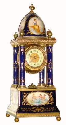 Condition: This clock is in excellent condition, no blemishes on the porcelain, movement running briskly. Note there are 4 loving scenes, mostly ladie...