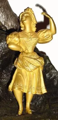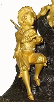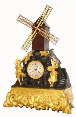 Condition: This clock has been nicely cleaned and retains original gilding and patina. Movements are running fine, both time and windmill movement. Qu...