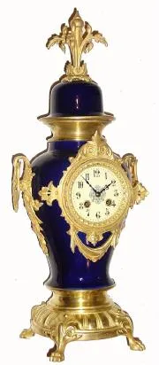 C.1890, French, Japy Freres, Blue Cobalt porcelain clock with ormolu trim.