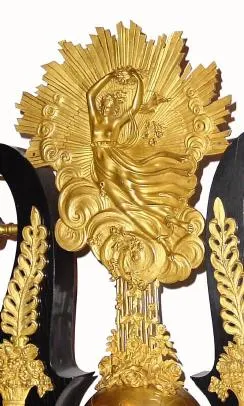 C.1840, French, Lyre Form Pendule, the pinwheel movement contained within the ?bob? of the pendulum, which emulates the appearance of a globe.