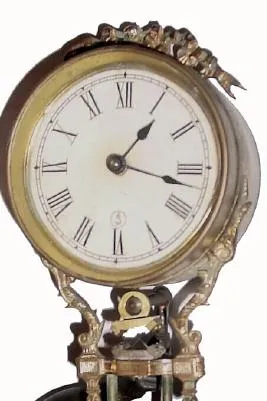 Condition: Someone has repaired the support bar where it attaches to her hand. It is running Ok as shown, and retains original finish and patina on st...