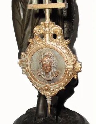 C.1883, Ansonia Clock Co., ?Fisher Swing, ?(female) with short, 4? dial canister arm, original to statue.