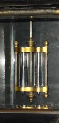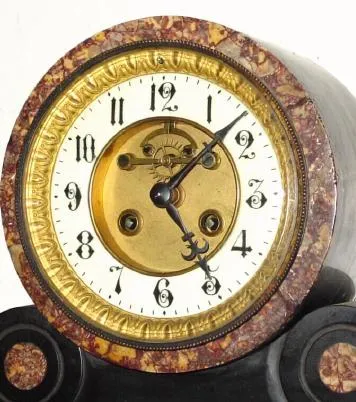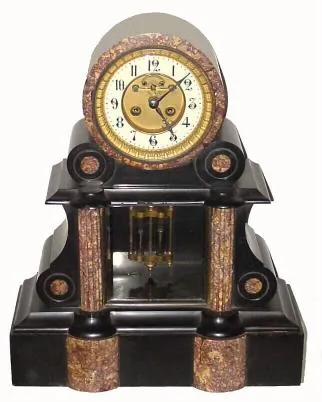 Condition: The marble has some small edge chips, and one side piece has a fingernail sized chunk out of one side. Original mercury pendulum is intact....