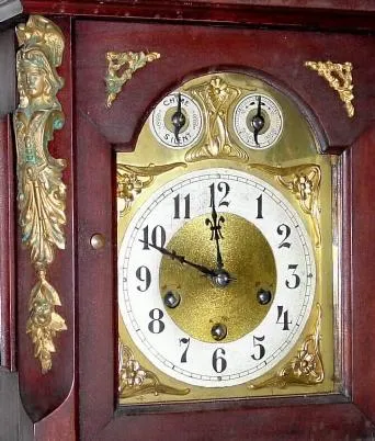 Condition: The dial has been papered over, but otherwise this is a good clock with original finish, bird tablet, hands and great label. There is a rep...