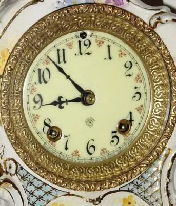 C.1895, Ansonia Clock Co., Royal Bonn, ?La Capelle?, 8-day time and strike porcelain mantel clock.