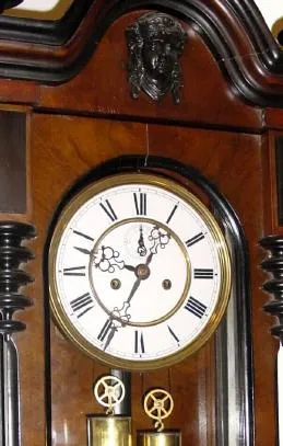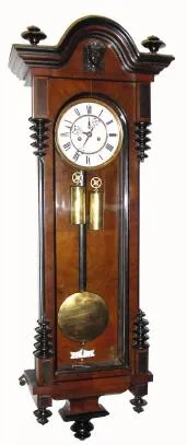 C.1885, German, 2-Weight ?Vienna Regulator? in a black walnut case with Ebonized finials and case trim.